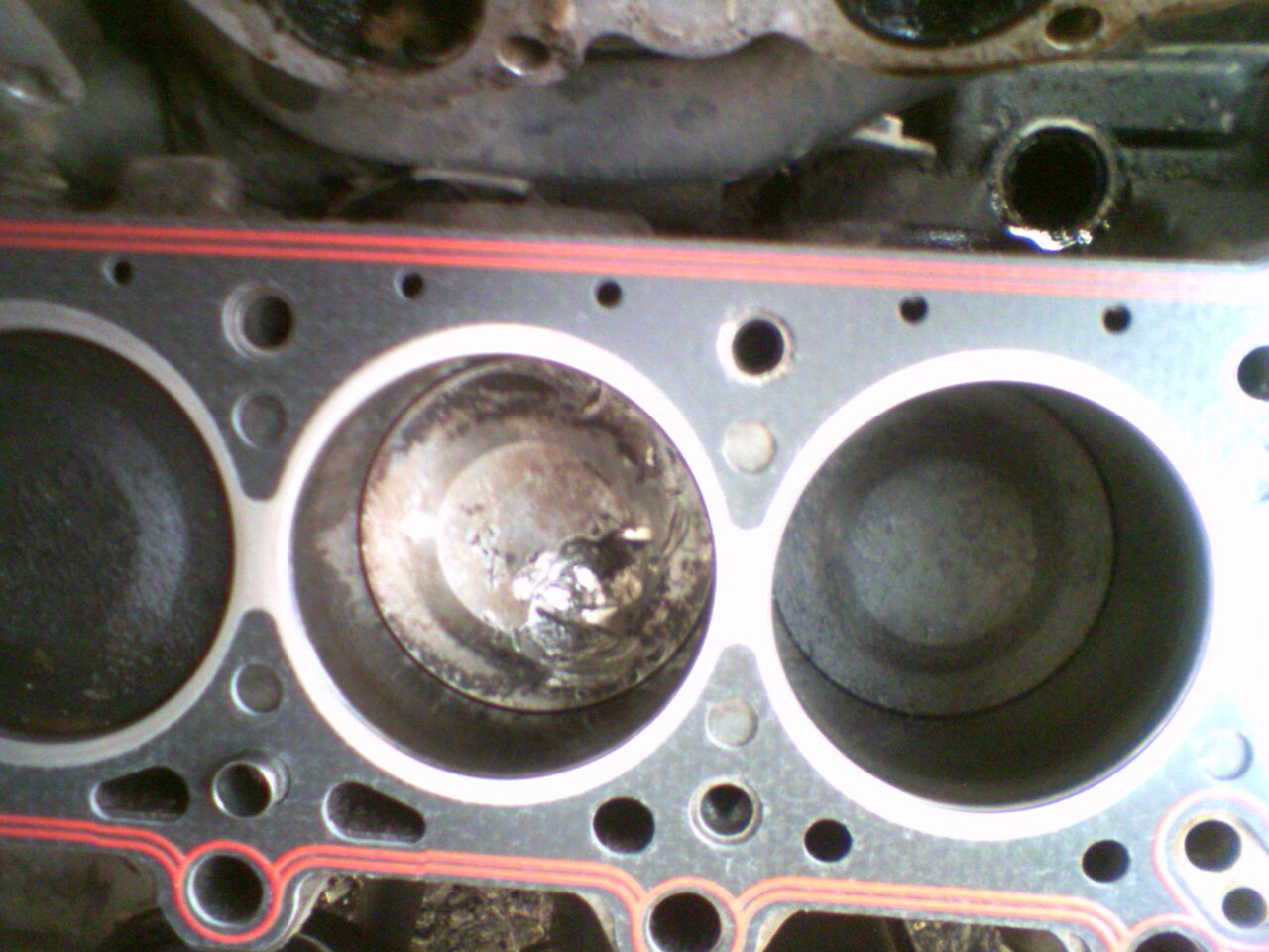 На моей пятере, на м20 двигле. Оборвало выпускной клапан, забило его обратно в канал перпендикулярно поршню. Чуть не пробило дно поршня. Хорошо, что голова в заначке с донора валялась.